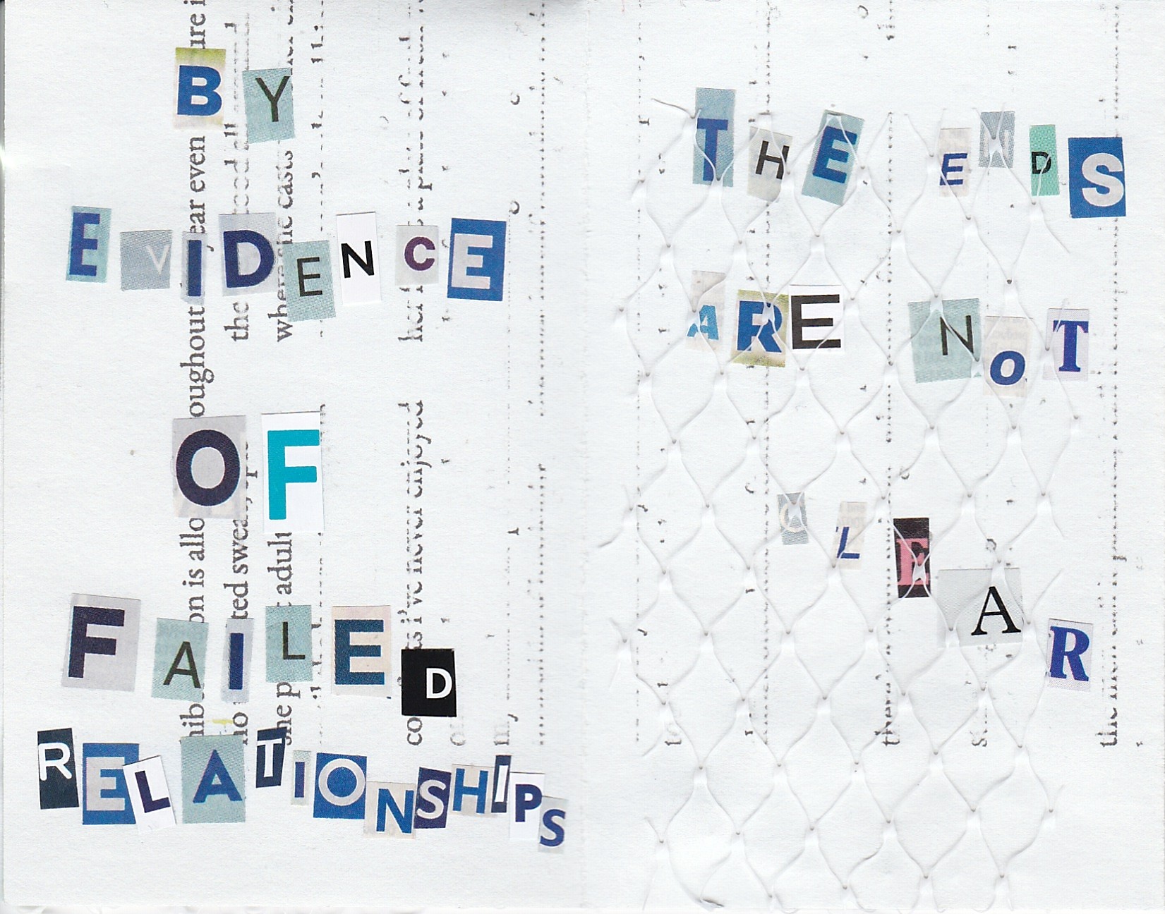 8 page minizine about what's left behind after endings, made with misprint paper, scraps of memories, and serial killer letters