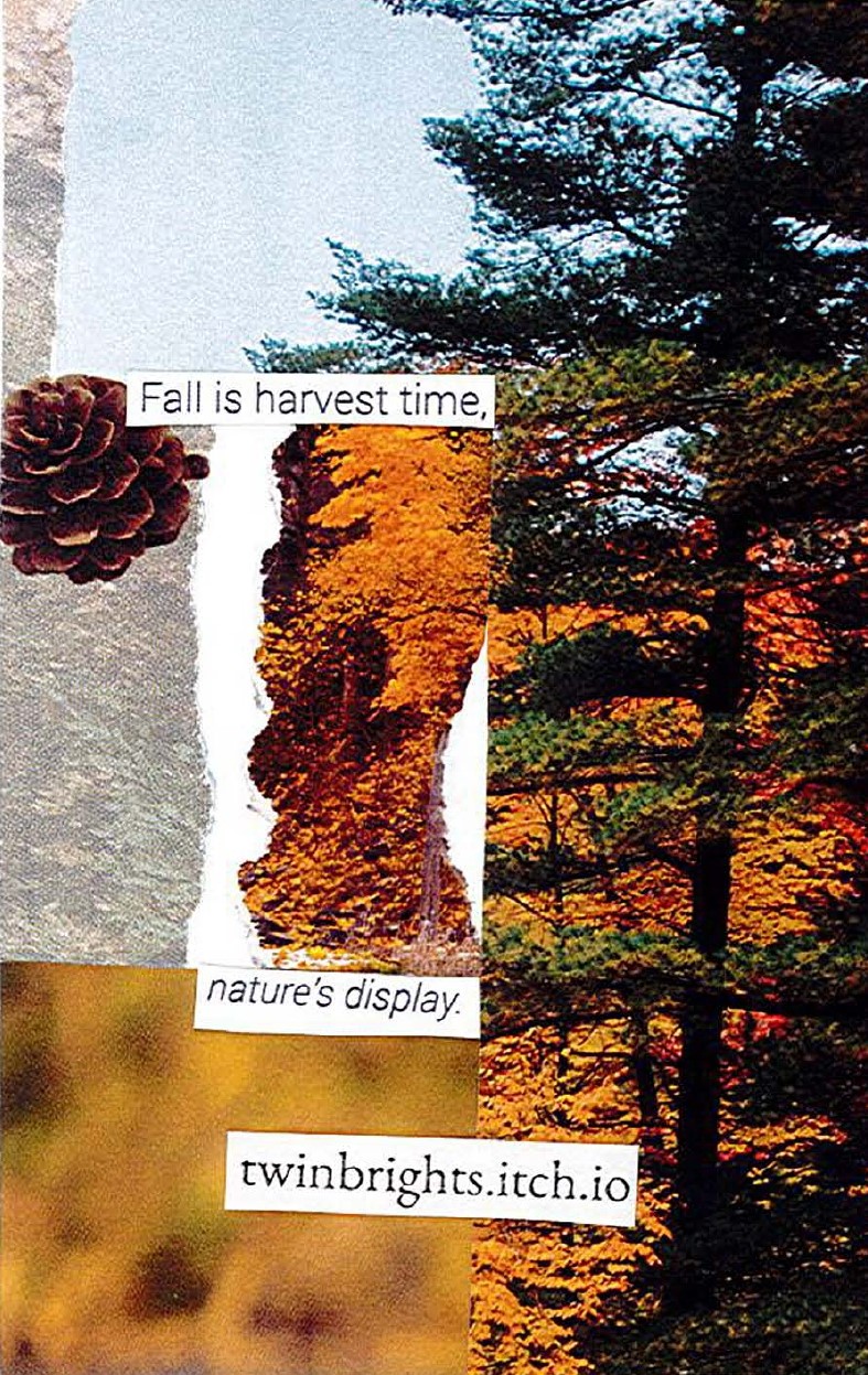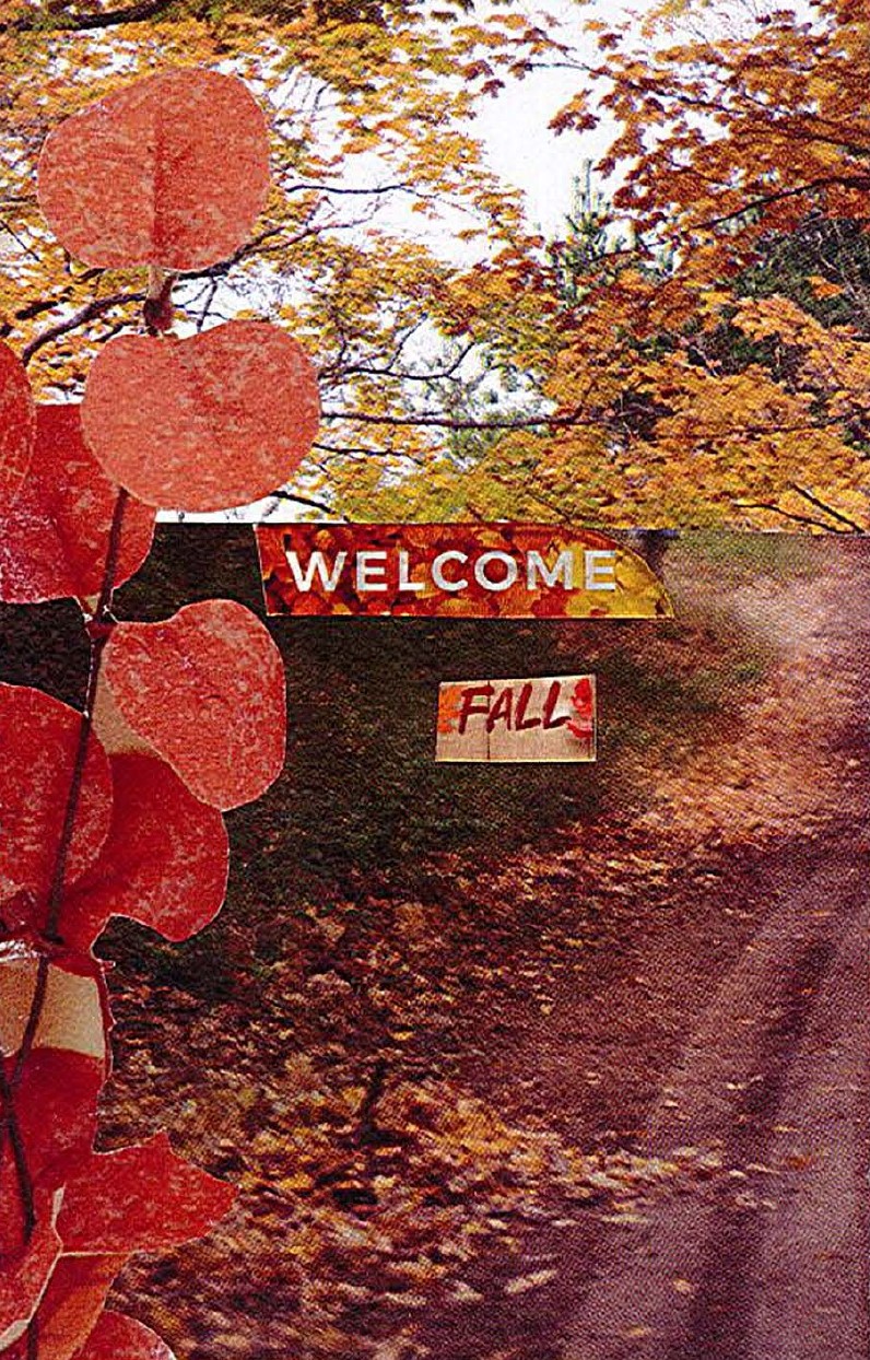 collaged 8 page minizine made on the fall equinox, with text+images sourced from local travel brochures, magazines, and mailers